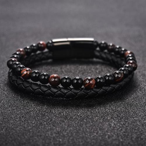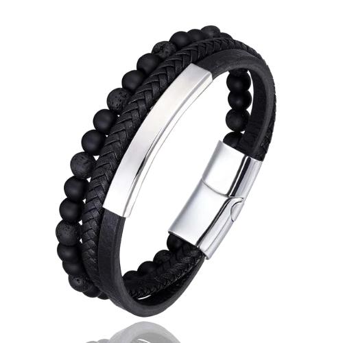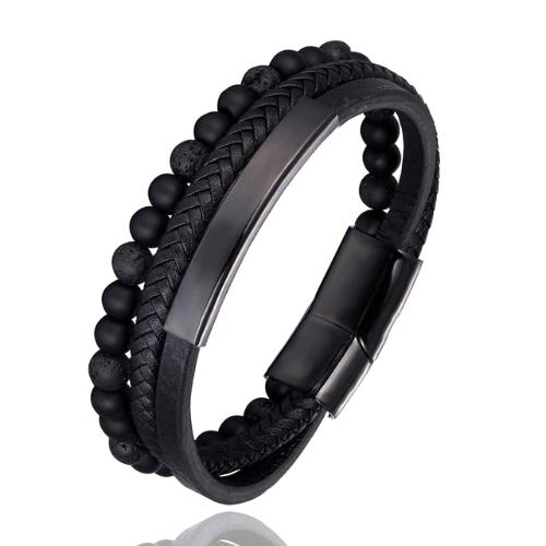 Black 3-Layer Beaded Leather Bracelet | 3 Styles