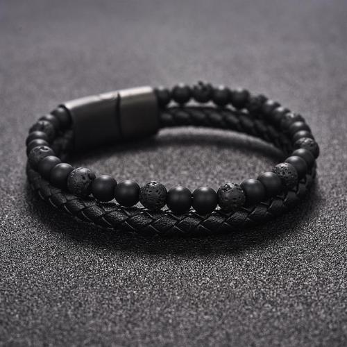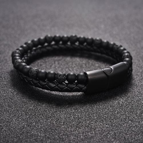 Burnt Black Dual Beaded Leather Bracelet