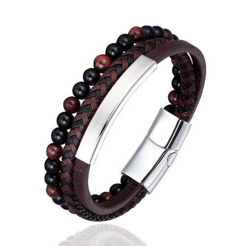 Brown 3-Layer Beaded Leather Bracelet | 3 Styles