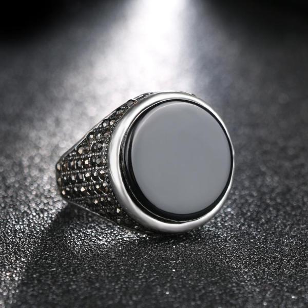Round Signet Pinky Ring - Silver & Black