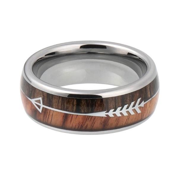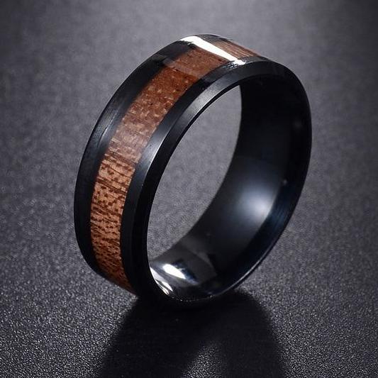 Wooden Inlay Wedding Ring Band with Black Carbon Inner-Shank