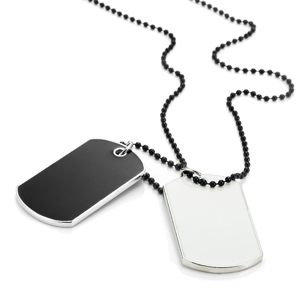 Army Style 2pcs Dog Tag Pendant Mens Necklace Chain