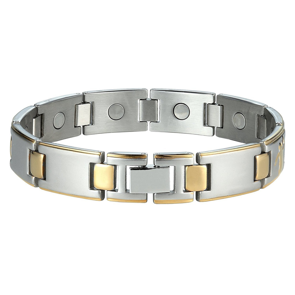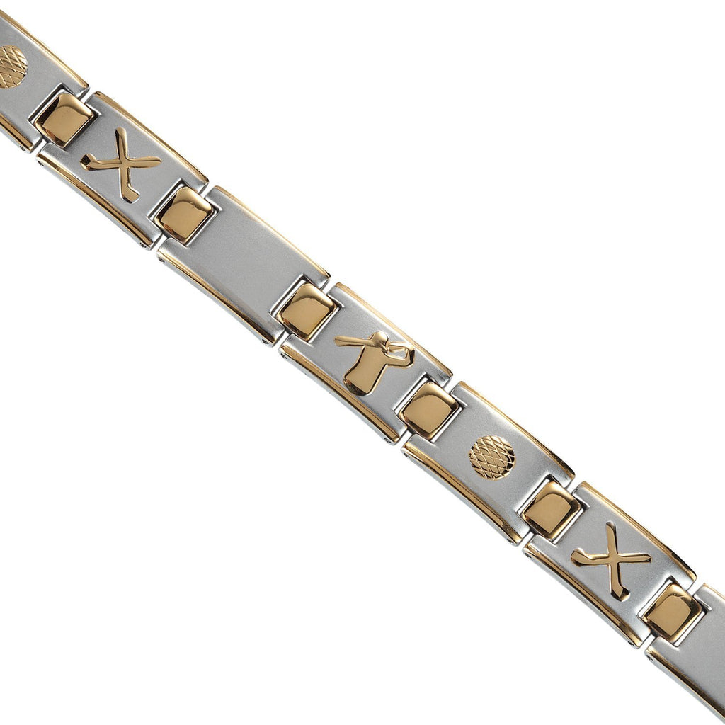 Baseball Magnetic Men's Link Bracelet 316L Stainless Steel 9.05 inch Silver & Gold Tone Bangle
