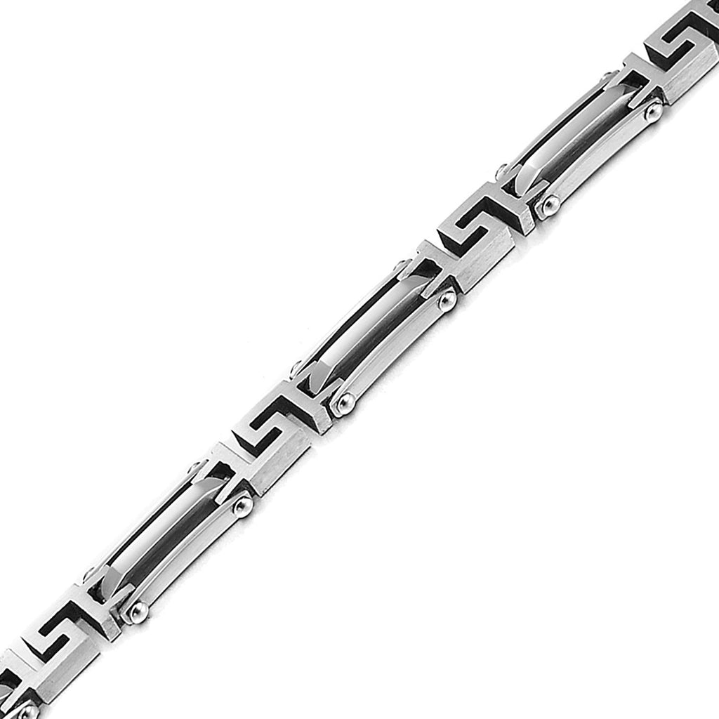 Elegant Mens Black Bracelet 316L Stainless Steel with Titanium Elements, Magnetic Therapy