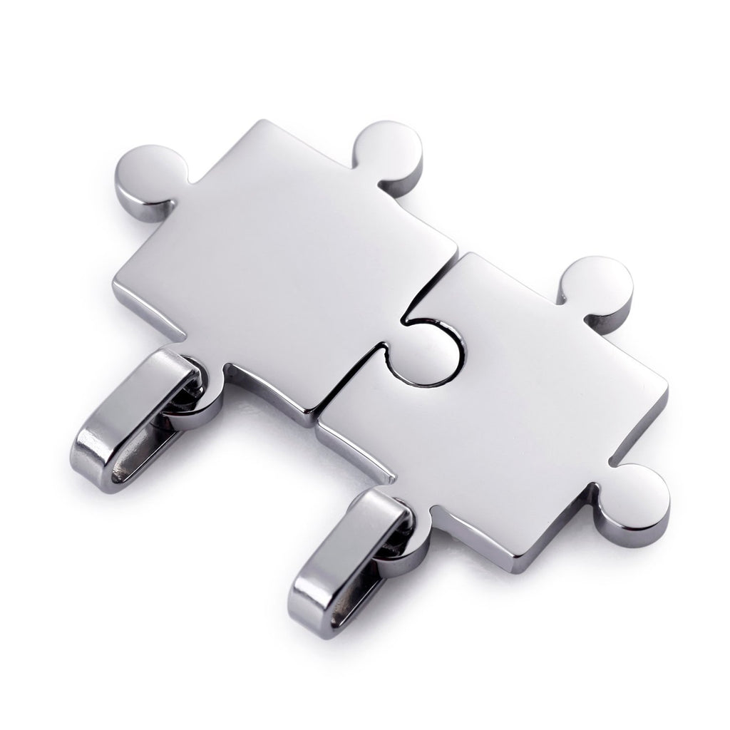 His & Hers Puzzle Matching Piece Couples Pendant Necklace Set with 18" & 21" Chain