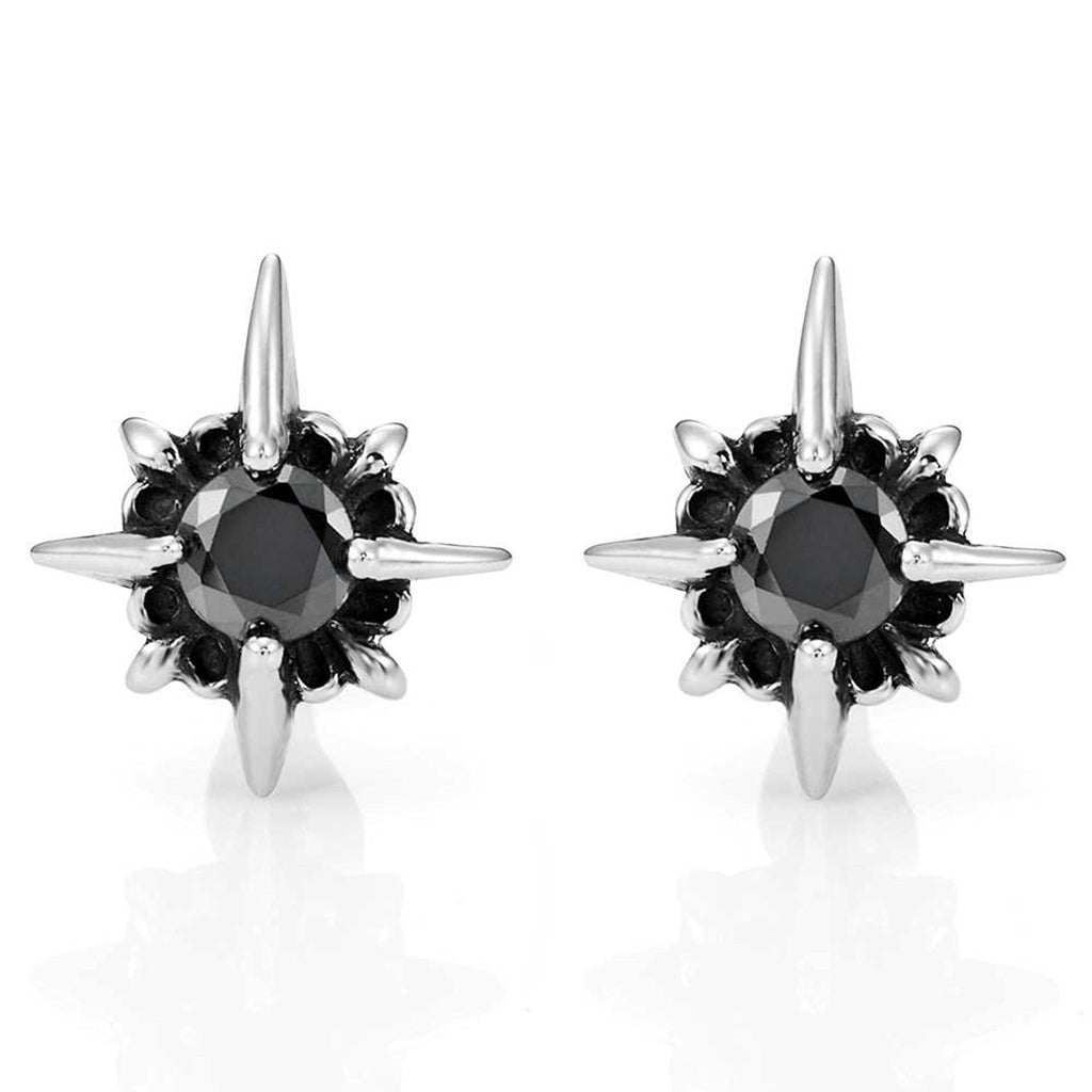 Beautiful Mens Star Stud Earrings Stainless Steel Silver, Black Cubic Zirconia