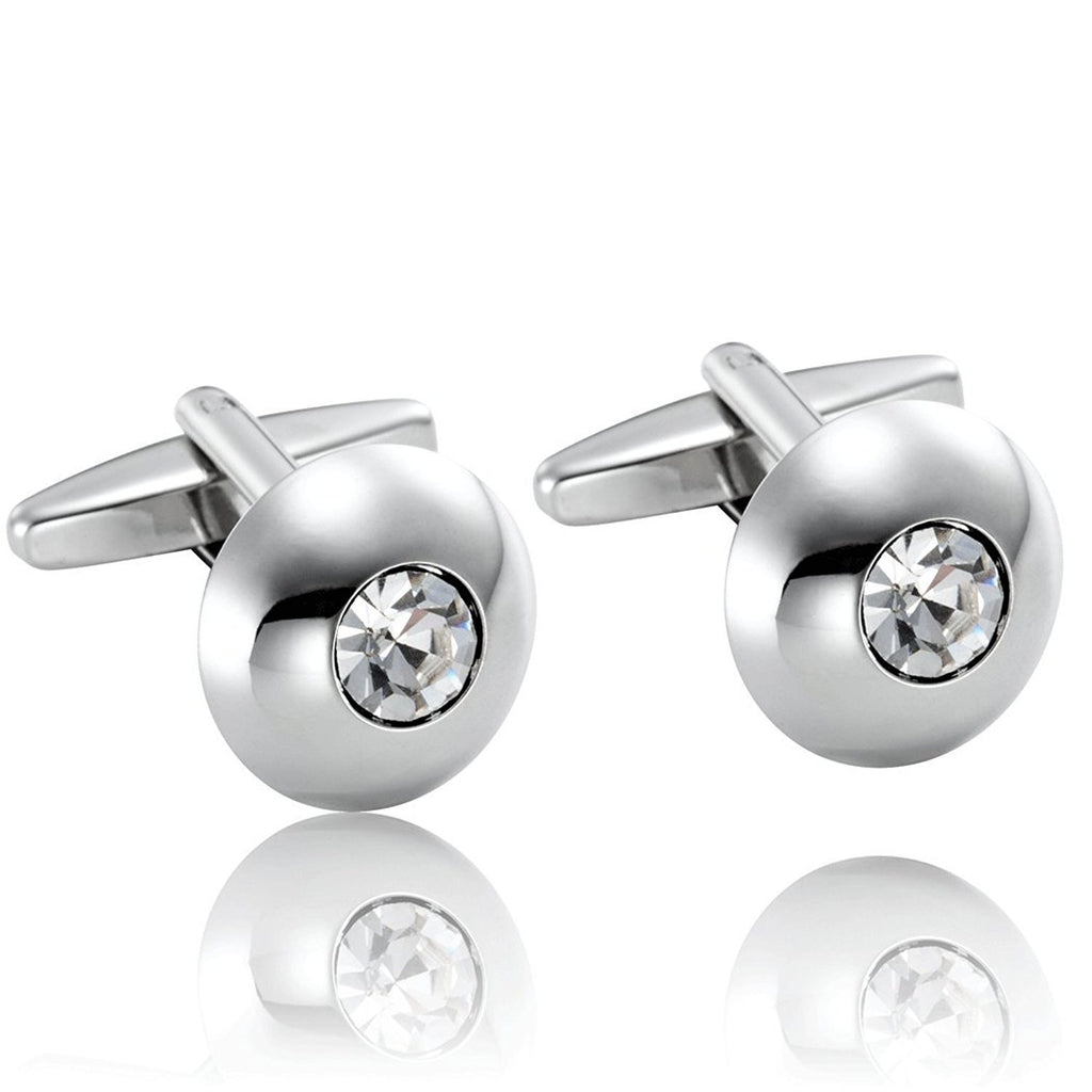 Round Men's Cufflinks Stainless Steel Cubic Zirconia Simple Circle Cuff Links