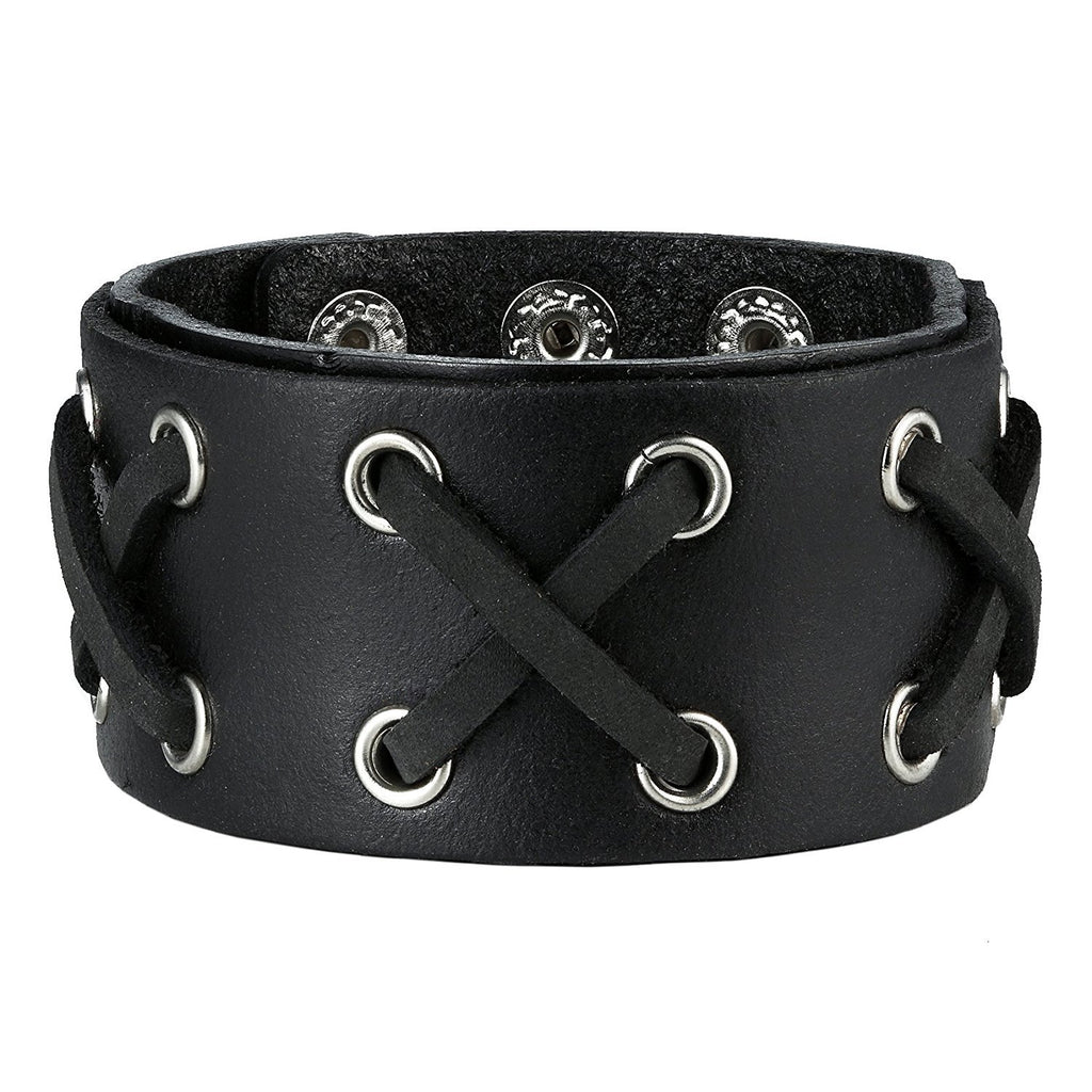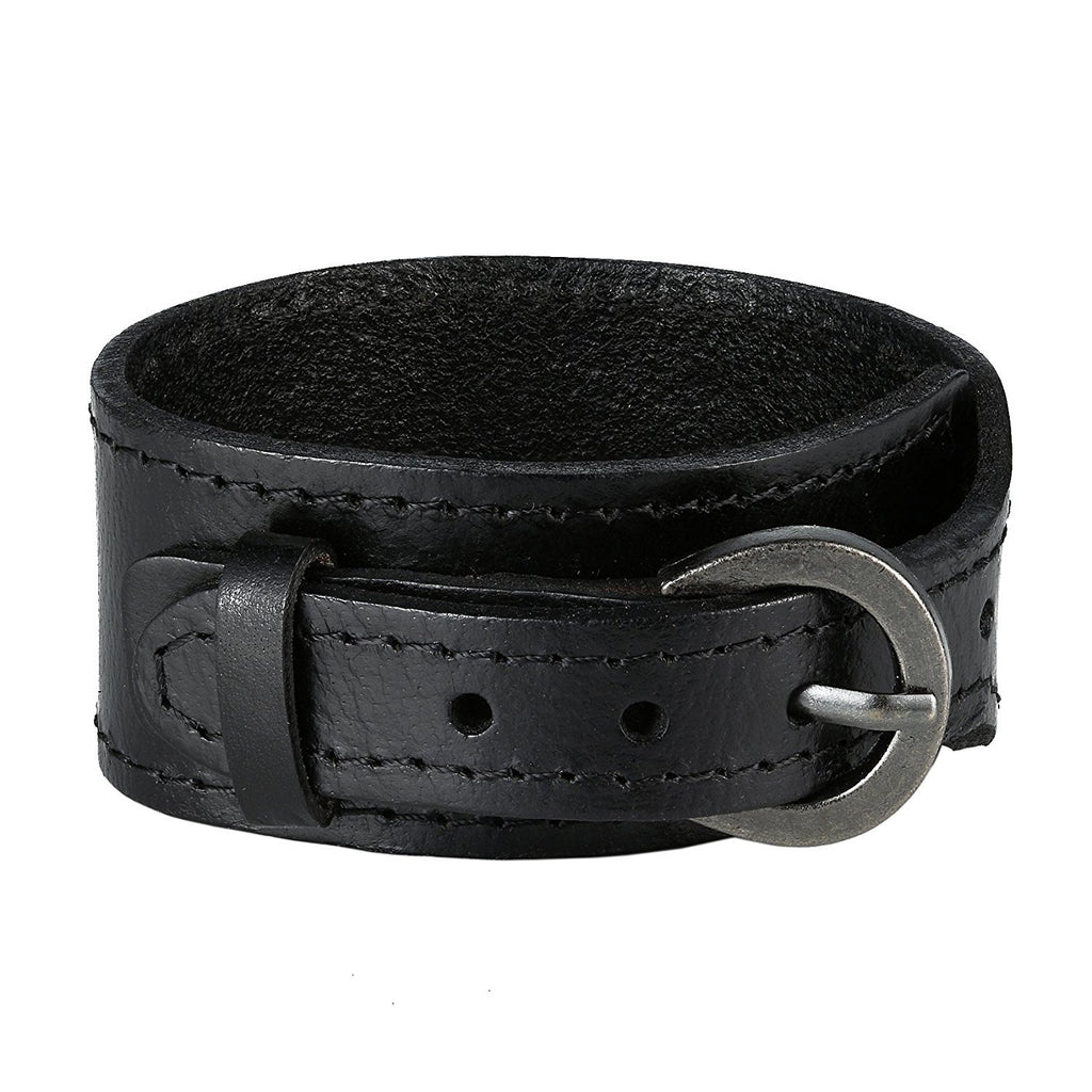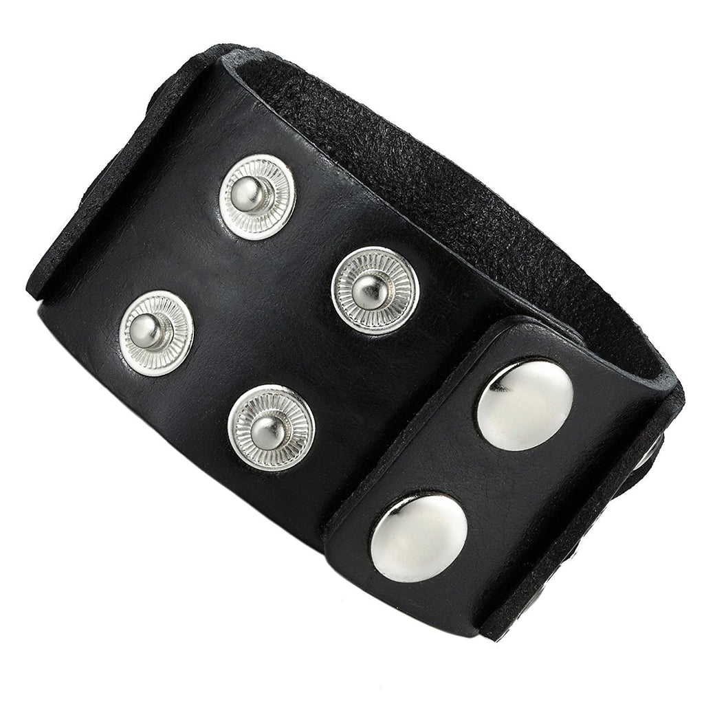 Black Genuine Leather Cuff Bangle Men's Bracelet Bold Punk Style (adjustable 8.25 inches)