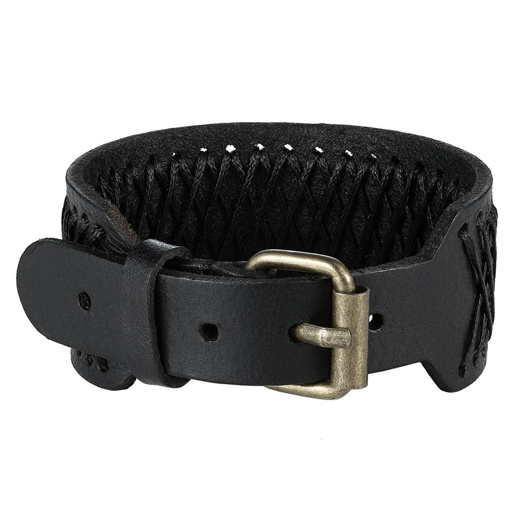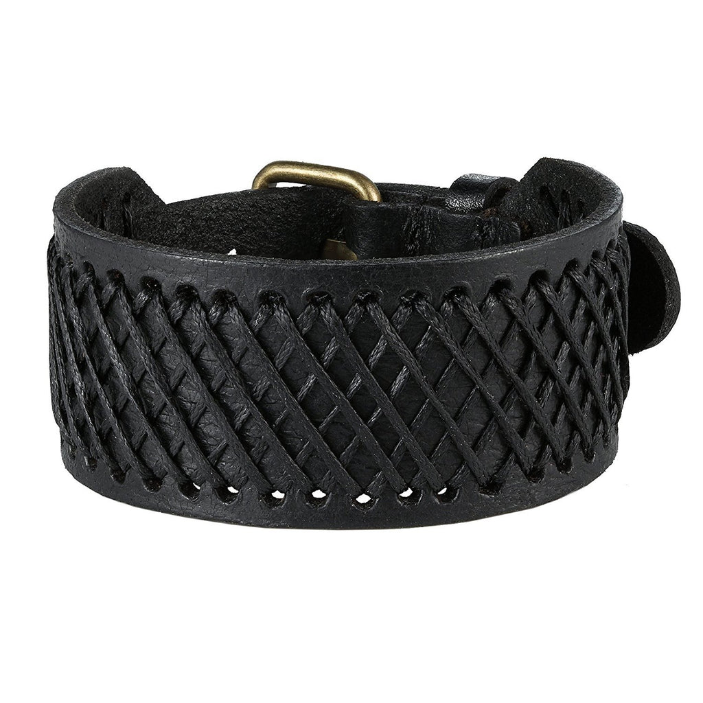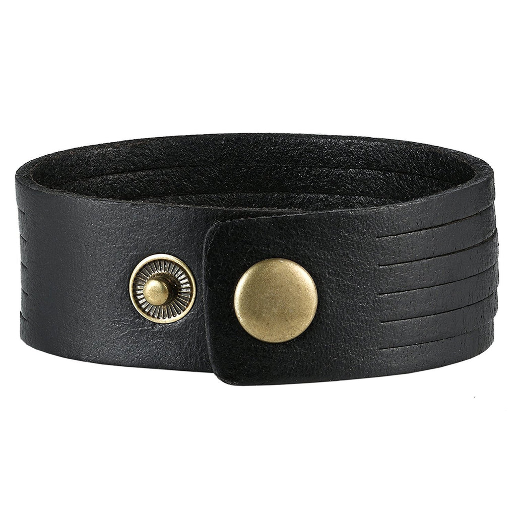 Black Genuine Leather Cuff Bangle Men's Bracelet (adjustable 7.1 to 9.05 inches)