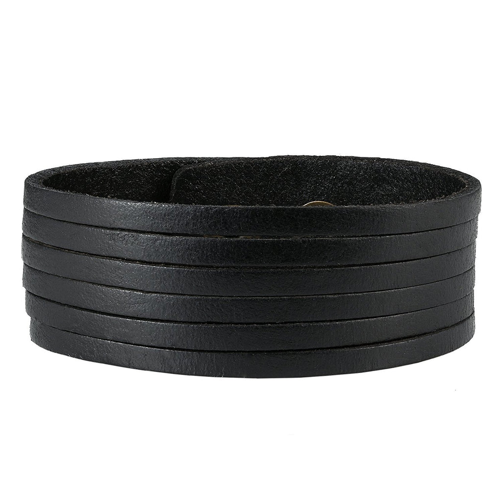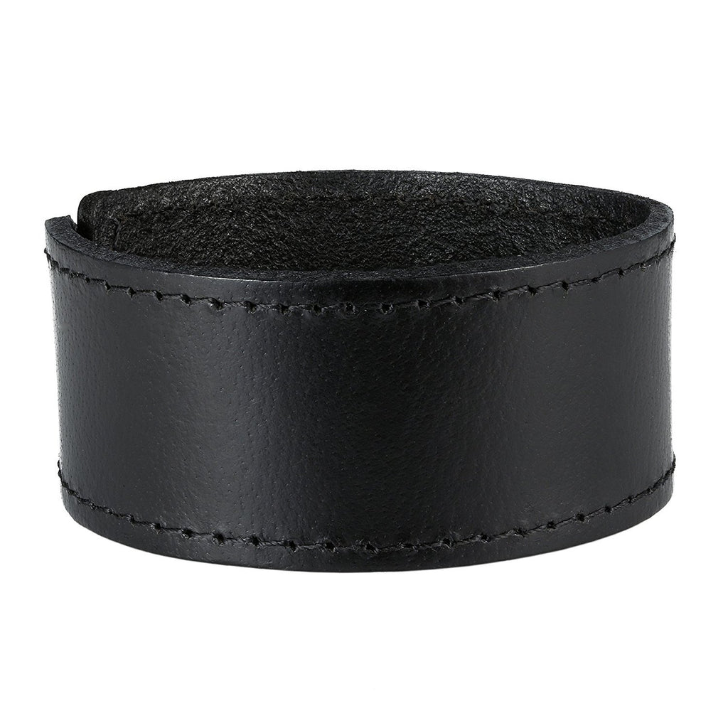 Black Genuine Leather Men's Cuff Bracelet Versatile & Durable (8.25 inches)