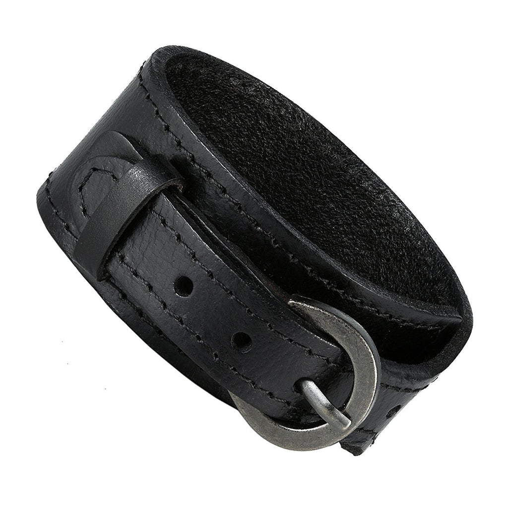 Black Genuine Leather Cuff Men's Bracelet Perfect as a Gift (adjustable 7.3 to 9.25 inches)