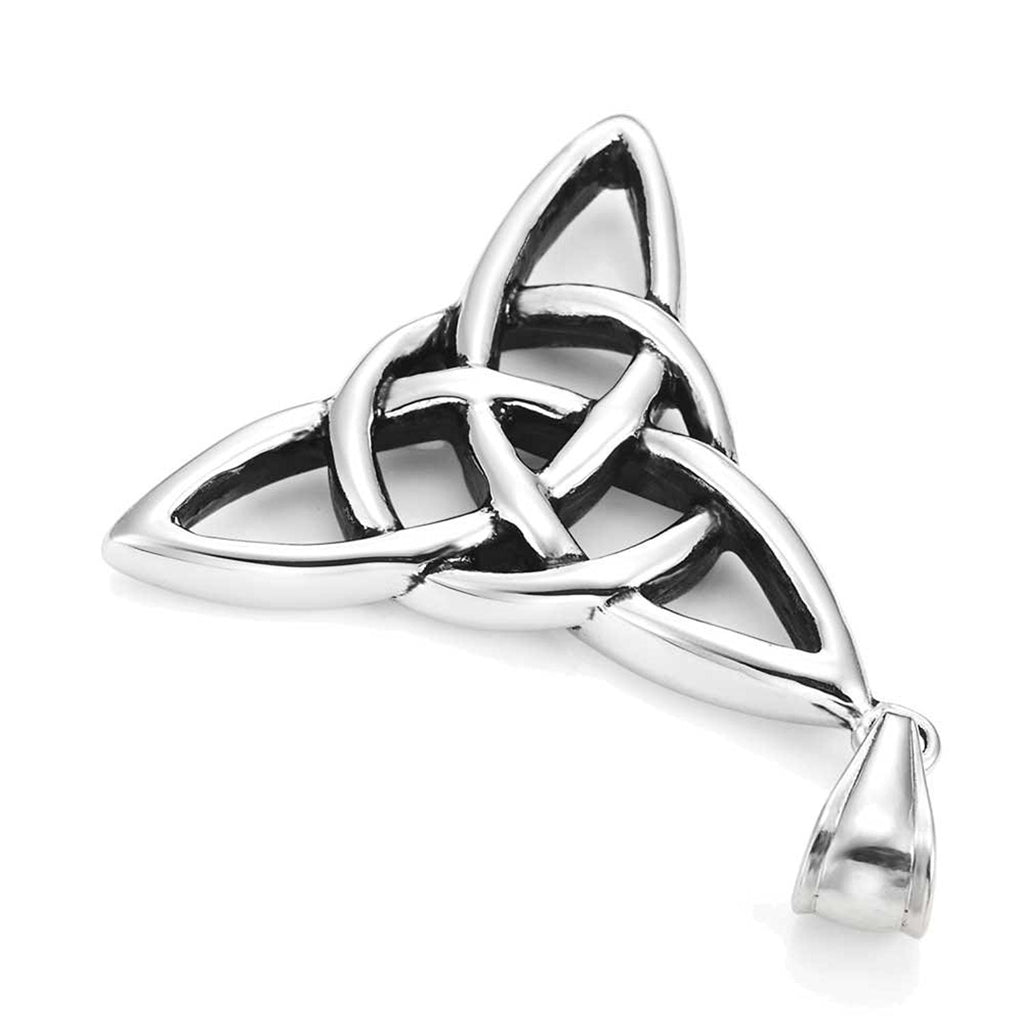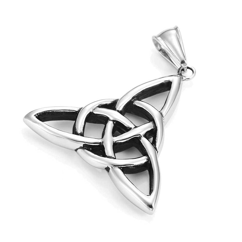 Vintage Stainless Steel Irish Triquetra Celtic Knot Amulet Pendant Necklace Black Silver , 21" Chain