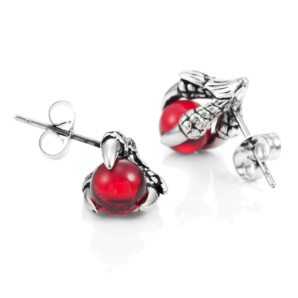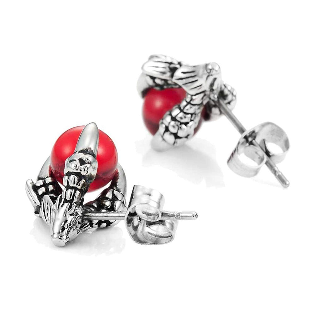 Vintage Stainless Steel Dragon Claw Mens Stud Earrings Set, 2pcs, Silver Red
