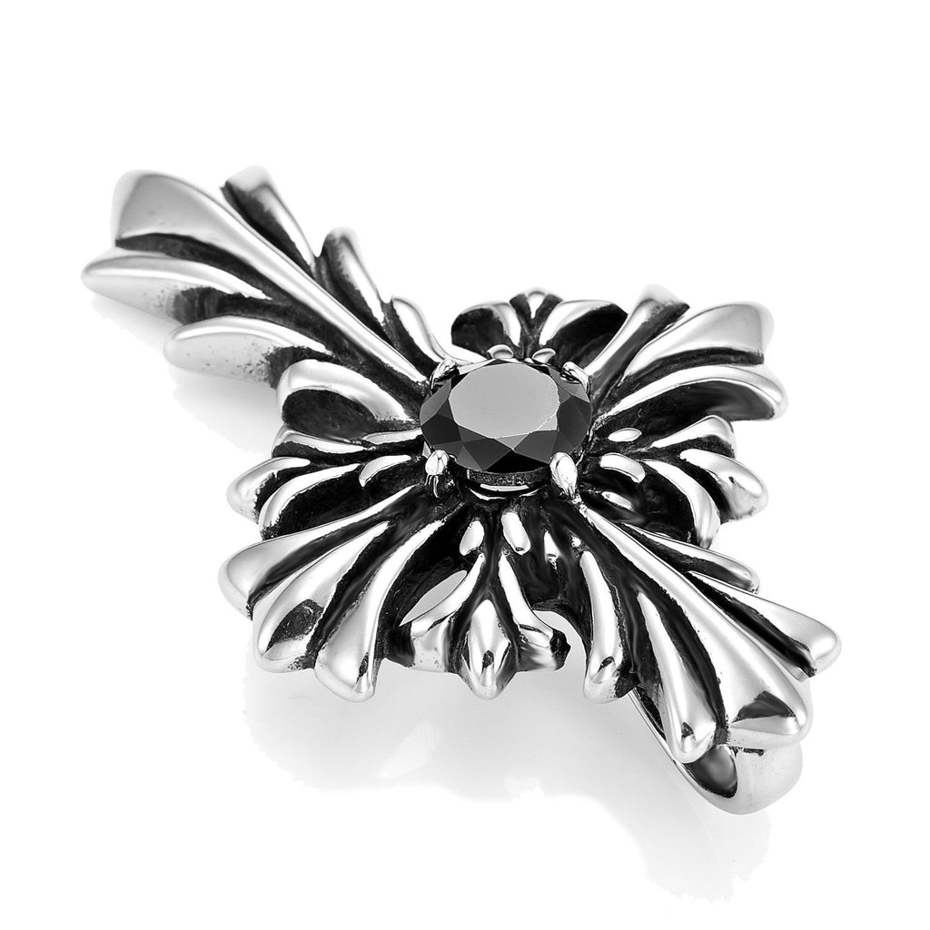 Vintage Royalty Cross Stainless Steel Black Cubic Zirconia Necklace Pendant (Silver, 21 inch Chain)