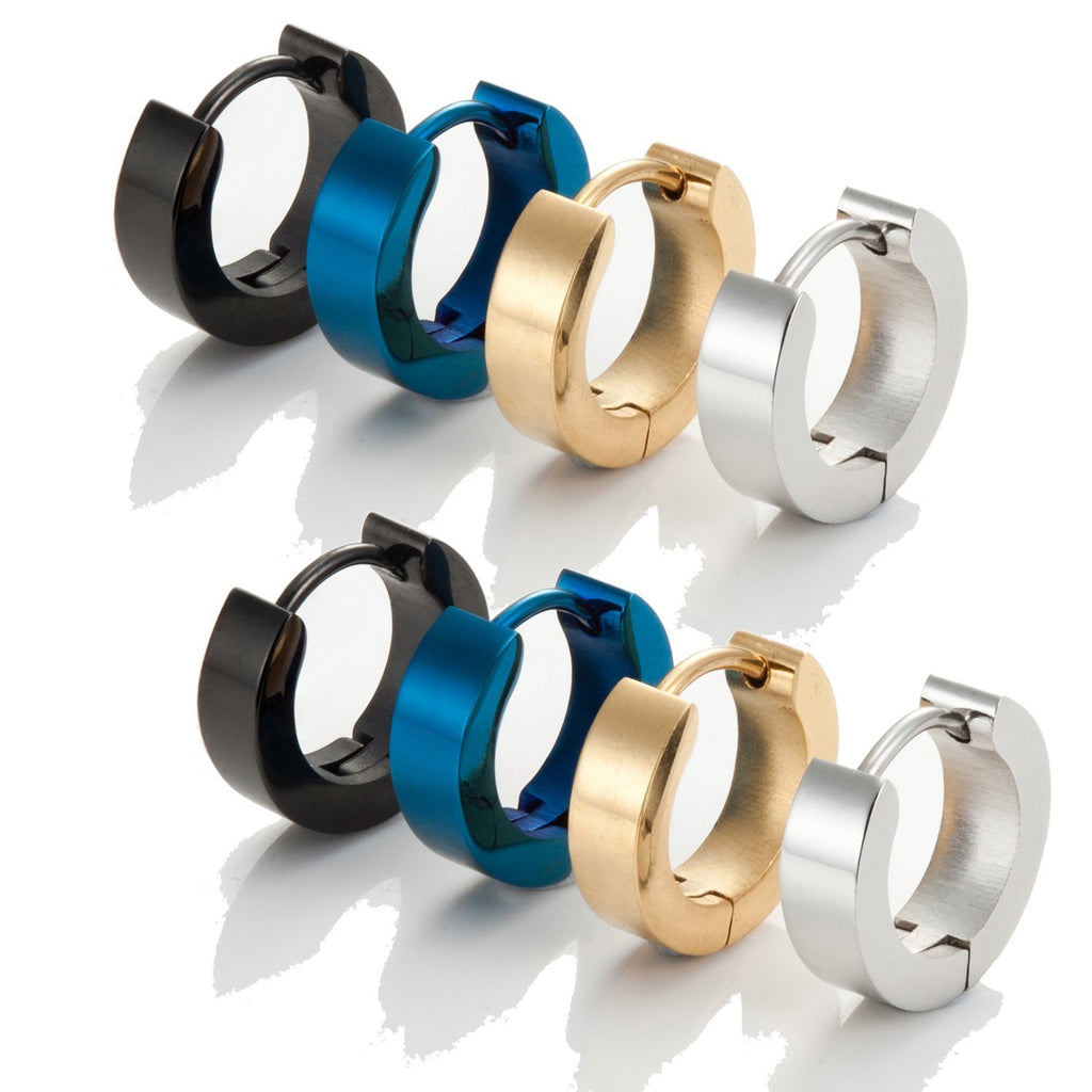 4 Pairs Set of Men's Stainless Steel Classic Huggie Hinged Hoop Earrings
