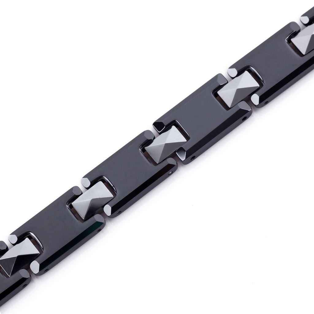 Amazing Tungsten and Ceramic Men's Link Bracelet (Black, Silver)