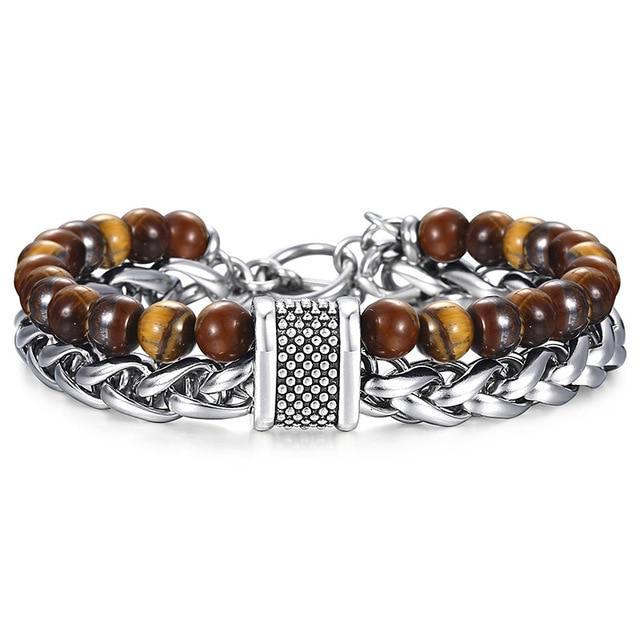 This beaded chain bracelet makes your appearance much more luxurious.The durable stainless steel chain and high-quality natural stone beads combine to create the best companionfor your daily routines, with class. The heavy weight of the braceletgives it a luxurious and pleasurablefeel. Select from 6 different stylesto get yourfavorite. The bracelet suits perfectly for formal looks and stands all daily activities.
