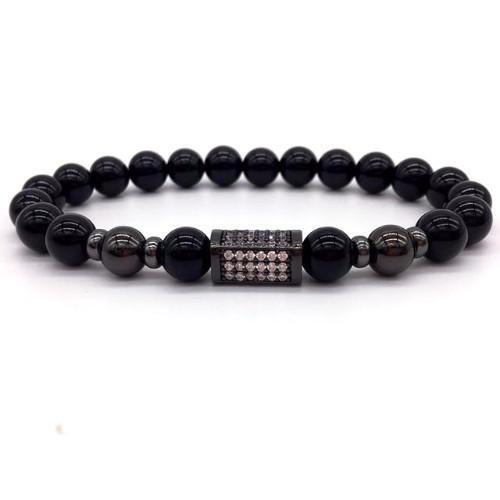 Gorgeous all black beaded bracelet. Make your friends jealous of your style with this stunning bracelet. The bar includes Austrian zirconias sprinkled among the black gold plating. Perfect fit for both casual and formal styles. Get the expensive executive look for a fraction of its market price. Goes best with suits and high-end accessories e.g. watches and other bracelets. One size fits all.