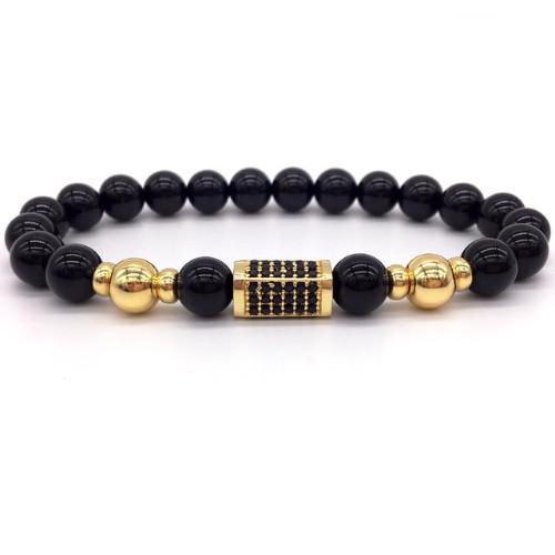 Gorgeous black beaded bracelet. Make your friends jealous of your style with this stunning bracelet. The bar includes Austrian zirconias sprinkled among the black gold plating. Perfect fit for both casual and formal styles. Get the expensive executive look for a fraction of its market price. Goes best with suits and high-end accessories e.g. watches and other bracelets. One size fits all.