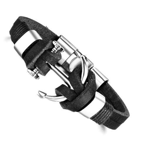 Leather anchor bracelet with silver detail.