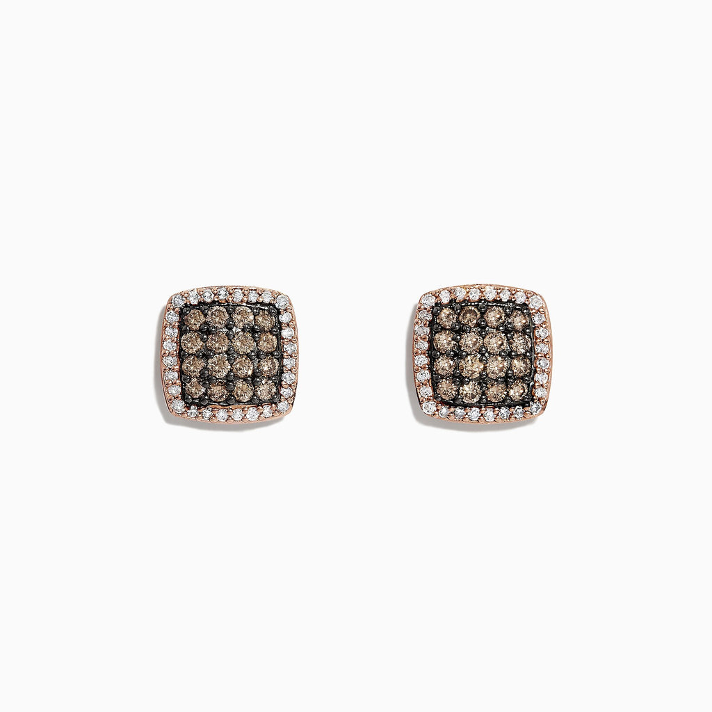 Effy 14K Rose Gold Espresso and White Diamond Stud Earrings, 0.71 TCW