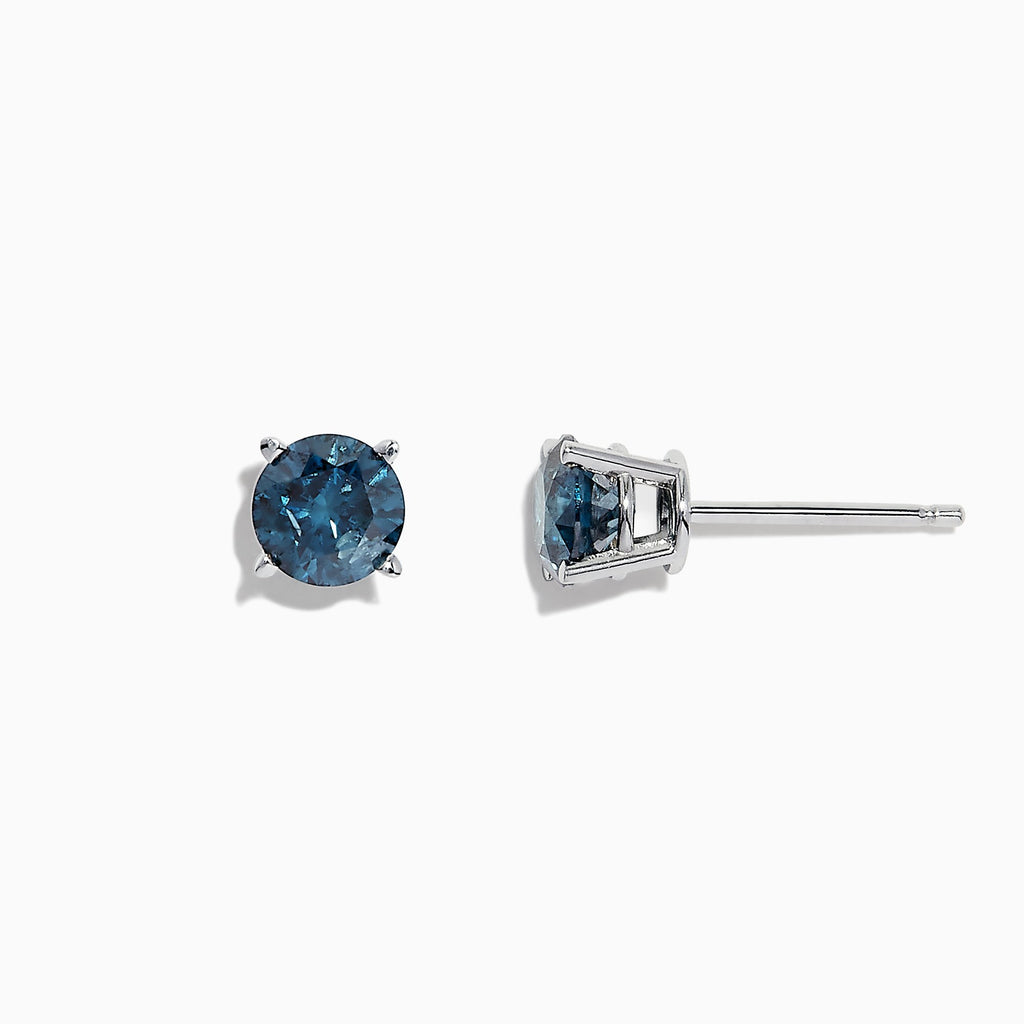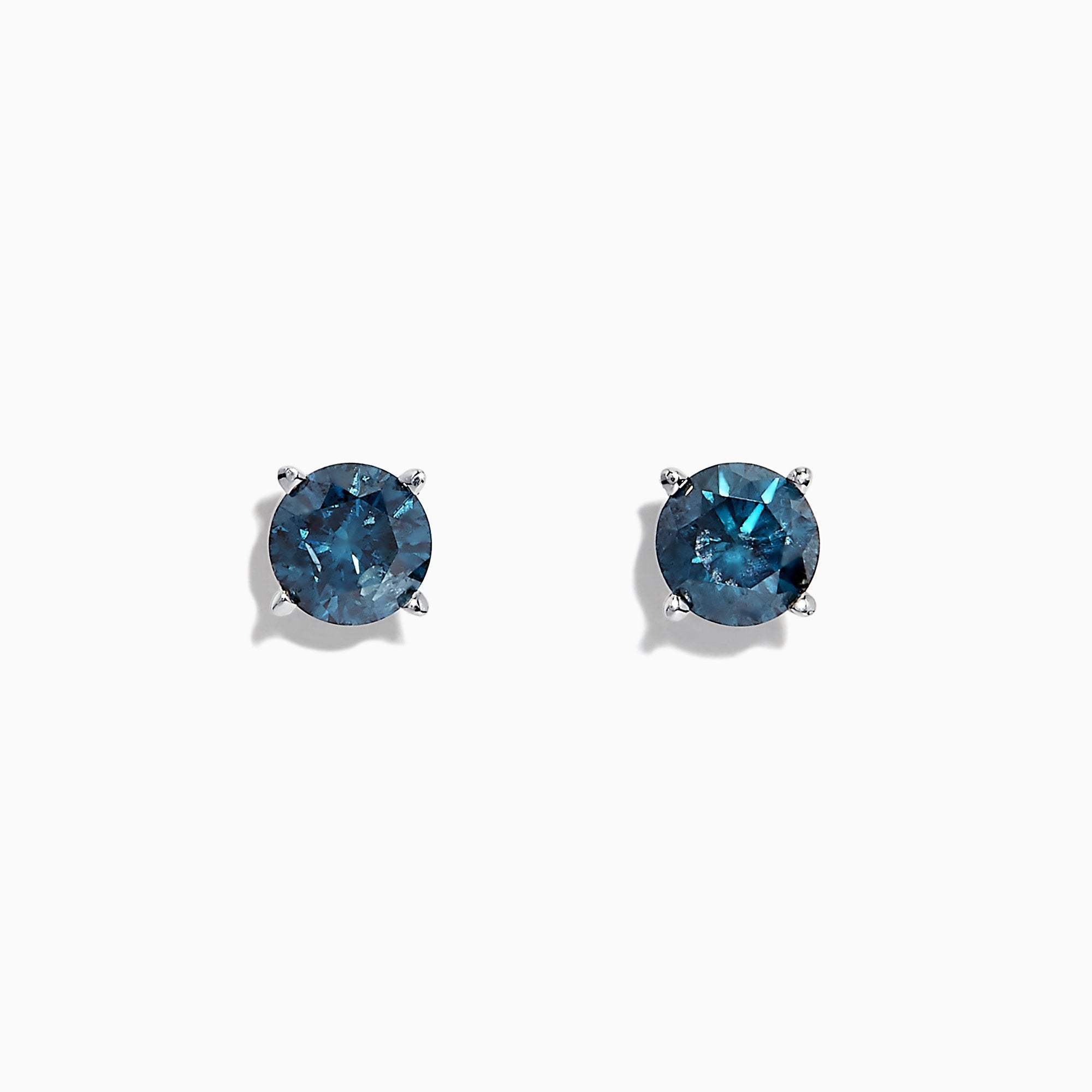 Effy 14K White Gold Blue Diamond Solitaire Stud Earrings, 0.98 TCW
