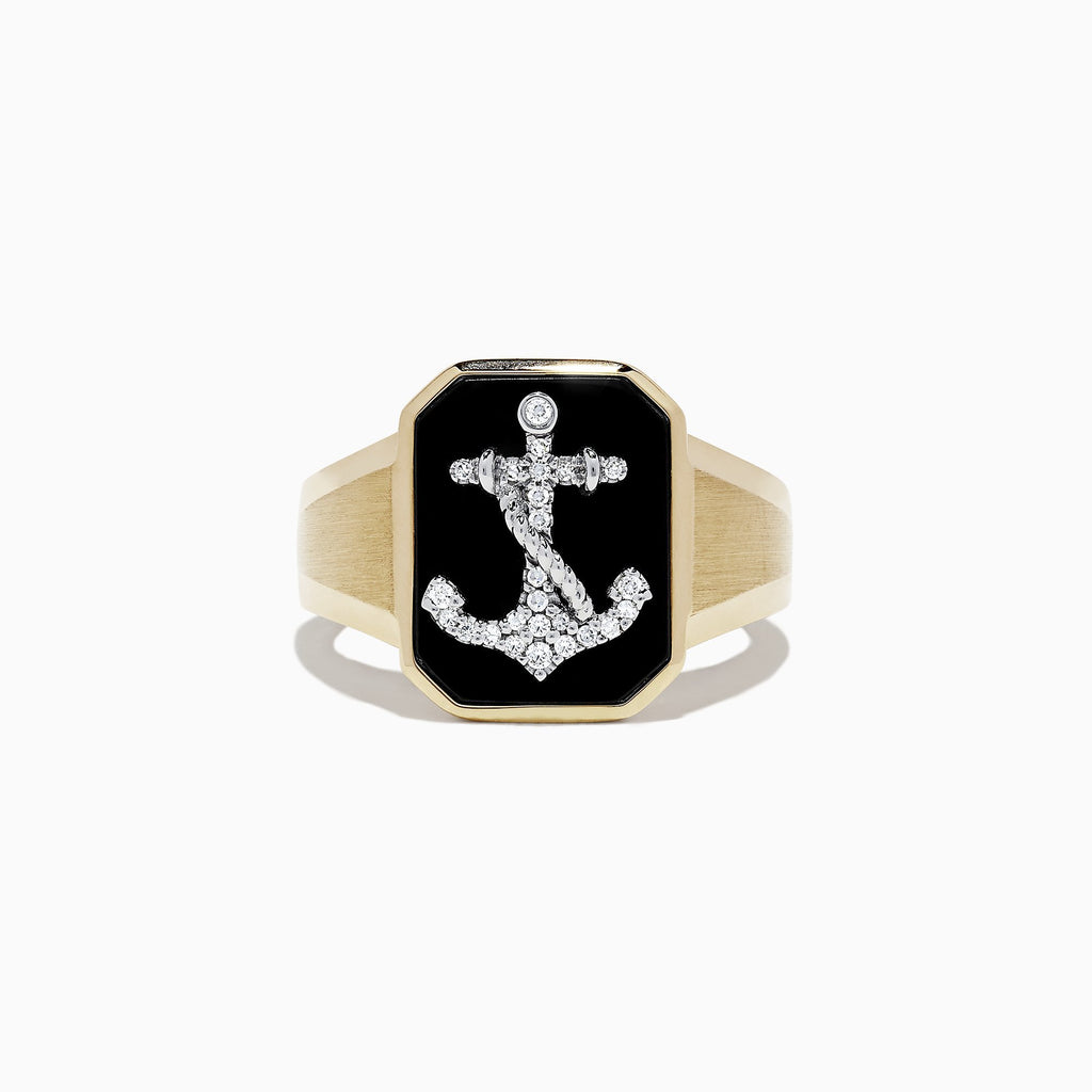 Effy Men's 14K Two Tone Gold Agate and Diamond Anchor Ring, 1.66 TCW