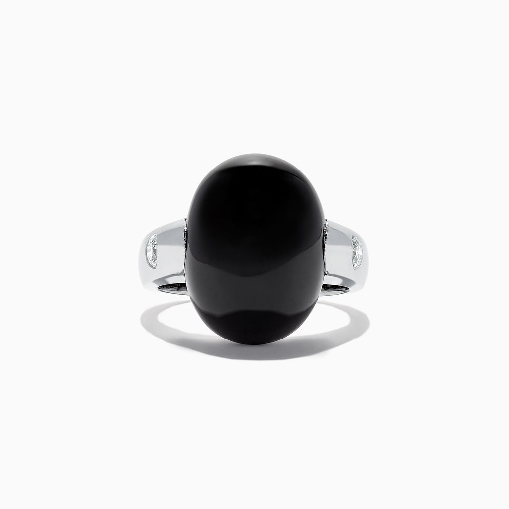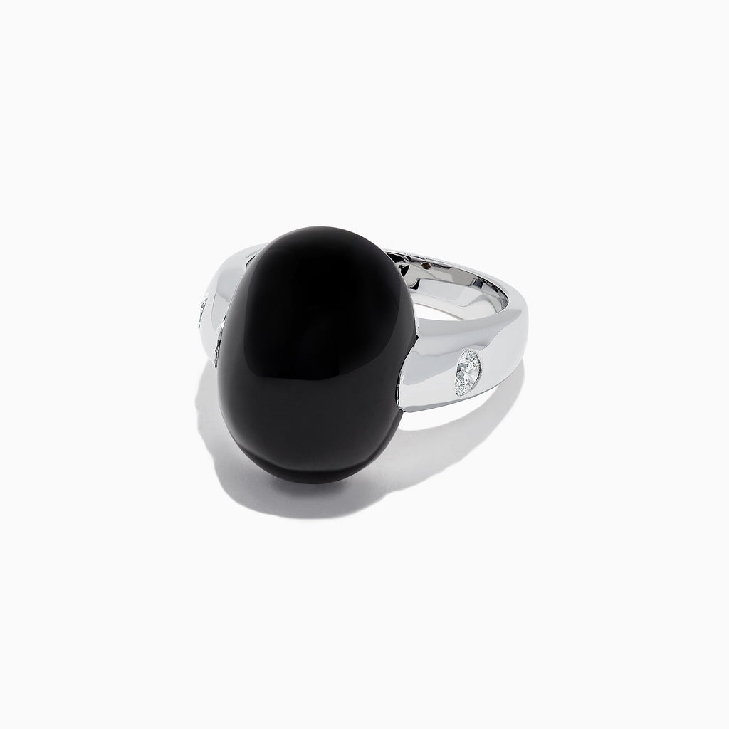 Effy Men's 14K White Gold Onyx and Diamond Dome Ring, 15.49 TCW