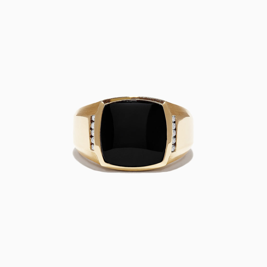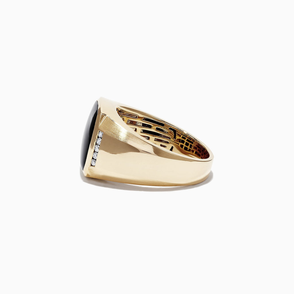 Effy Men's 14K Yellow Gold Black Agate and Diamond Ring, 0.13 TCW