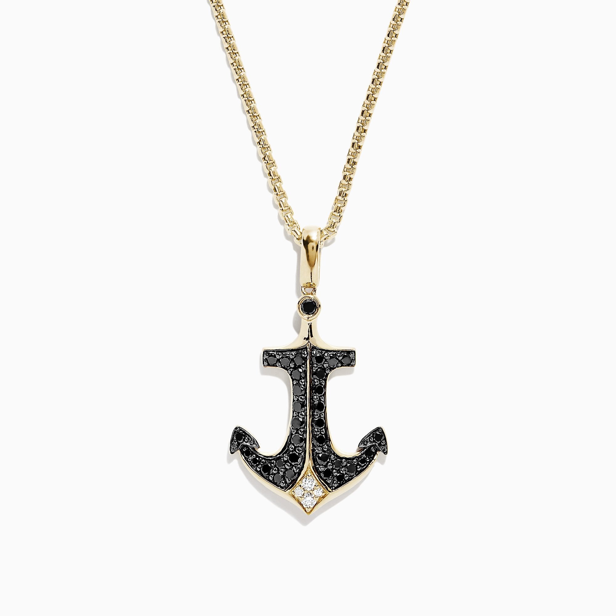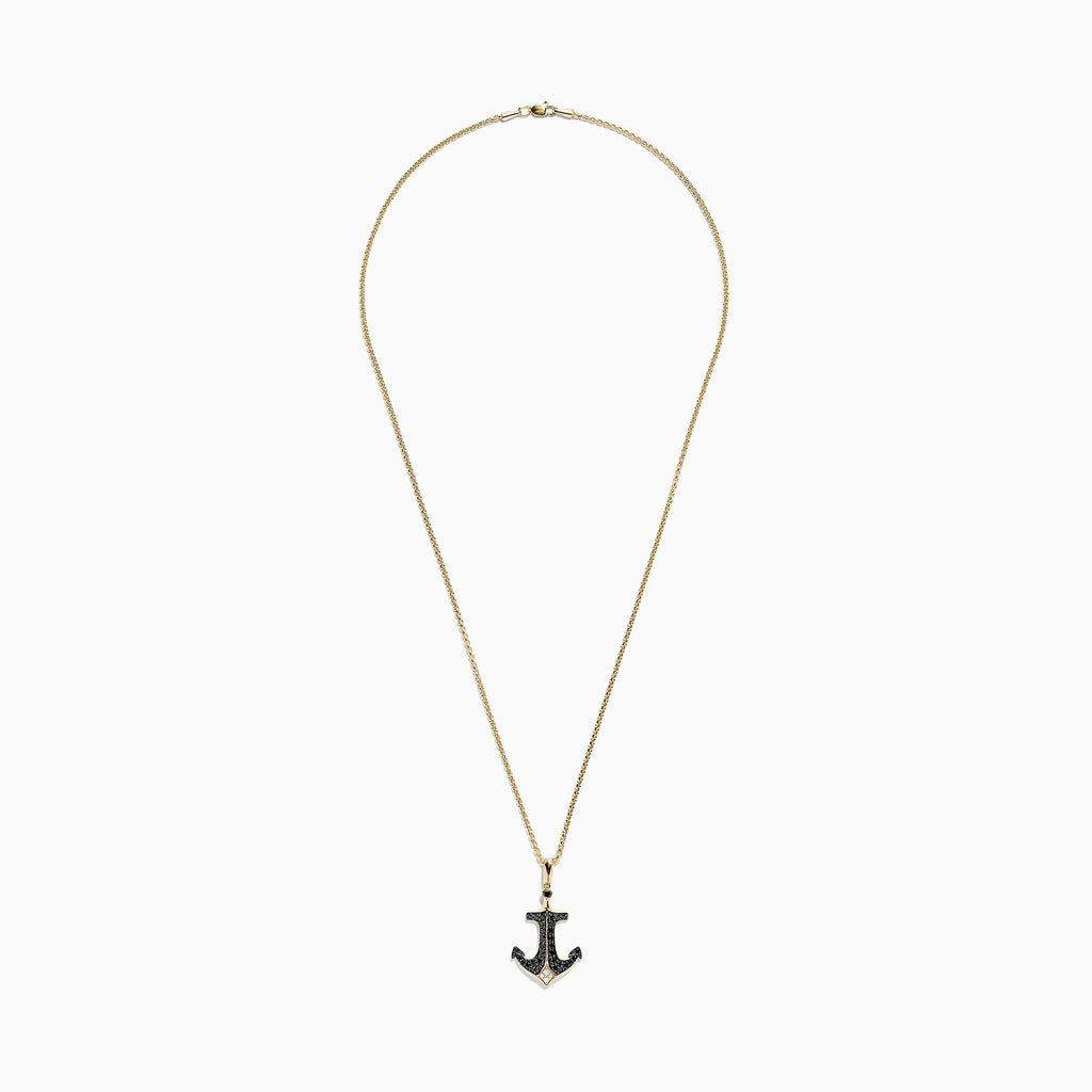 Effy Men's 14K Yellow Gold Black and White Diamond Anchor Pendant, 0.73 TCW