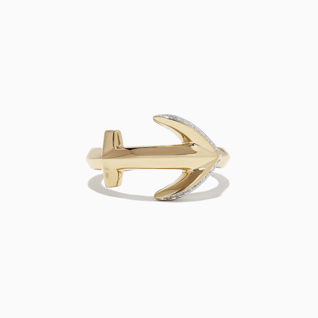 Effy Men's 14K Yellow Gold Diamond Anchor Ring, 0.09 TCW