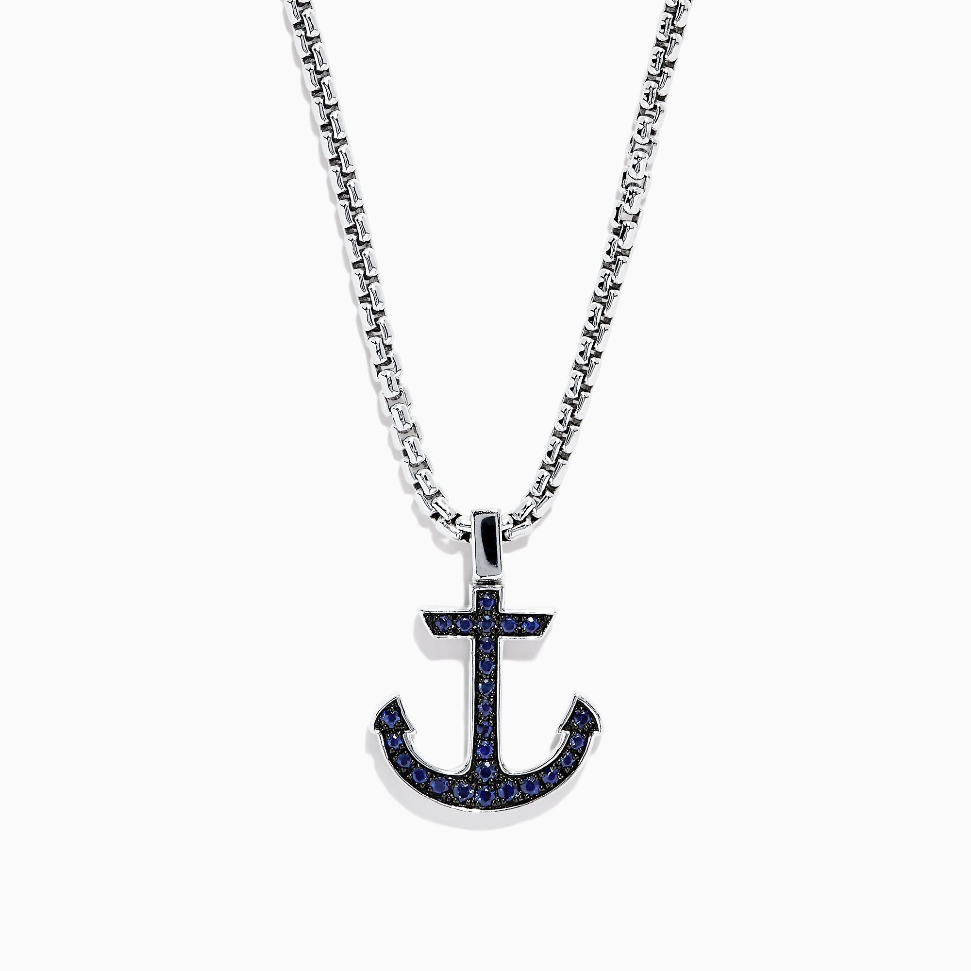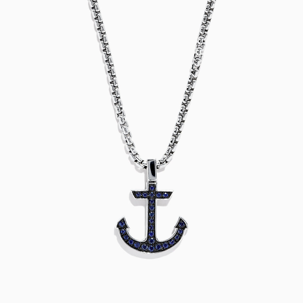 Effy Men's Sterling Silver Blue Sapphire Anchor Pendant, 0.52 TCW