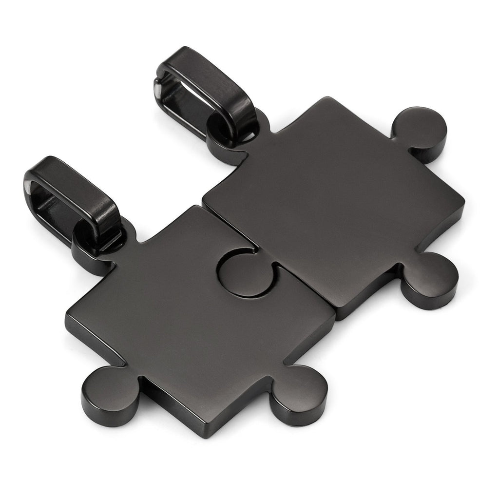 includes a pair of puzzle piece pendants that measure 1.6 inches in length by 0.80 inch in width by .12 inch in thickness.