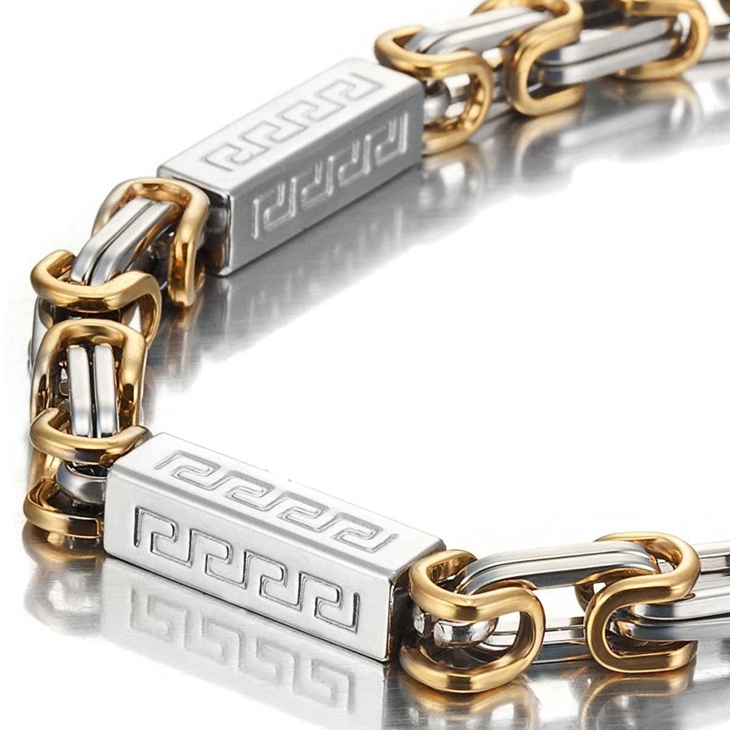 Impressive Men's Stainless Steel Bracelet Byzantine Chain, Gold Silver, 9 Inch