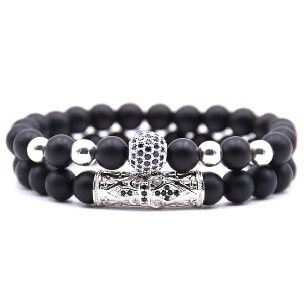 A must-have bracelet set with two bracelets made of black matte agate stones and topped up with silver details and black cubic zircon. An instant and effortless upgrade to your outfit. Suits well for formal looks. Choose from 2 stunning styles.