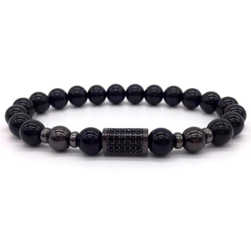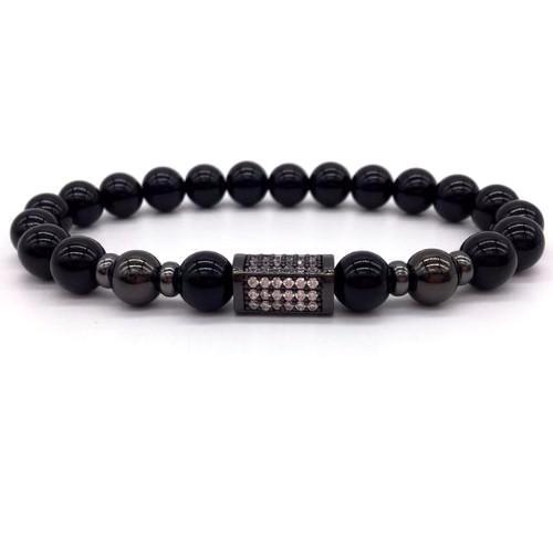Gorgeous black beaded bracelet with silver details. Make your friends jealous of your style with this stunning bracelet. The bar includes Austrian zirconias sprinkled among the silver plating. Perfect fit for both casual and formal styles. Get the expensive executive look for a fraction of its market price. Goes best with suits and high-end accessories e.g. watches and other bracelets. One size fits all.