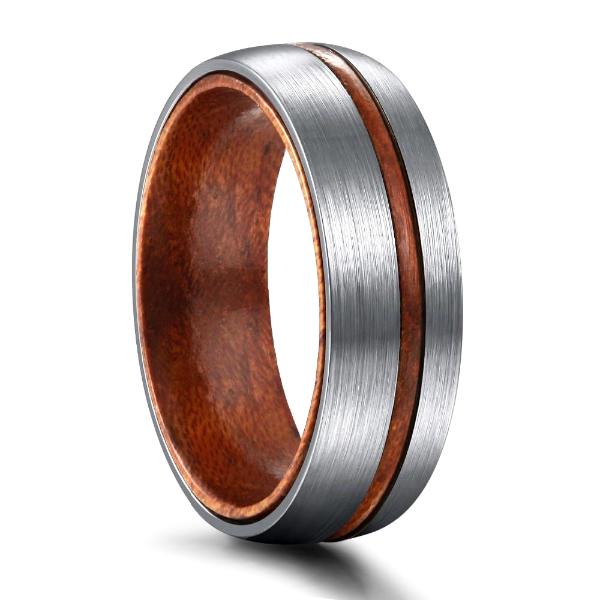 Brushed Silver Titanium & Wood Grain Ring Band