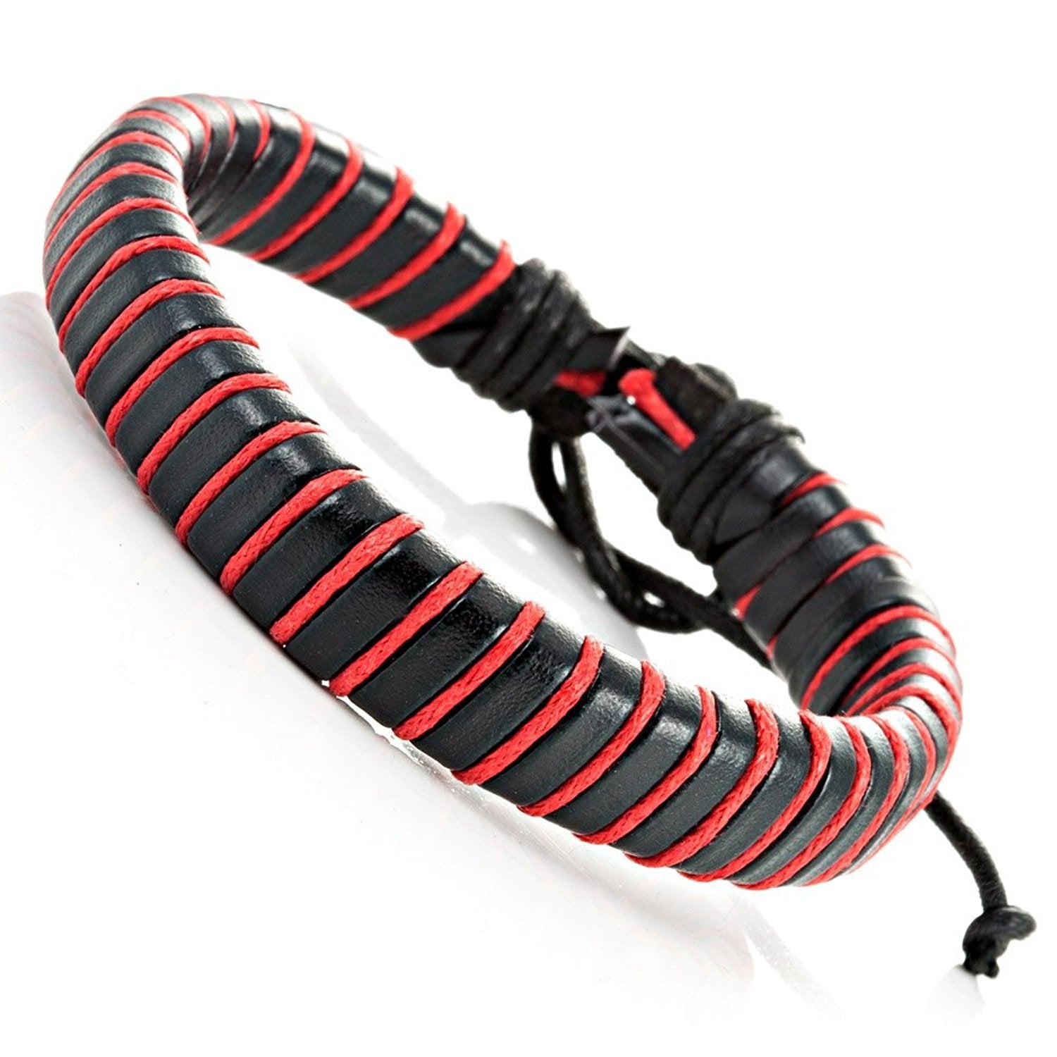 Unique Black & Red PU Leather Bracelet Cuff Bangle for Him & Her - Unisex (Adjustable)