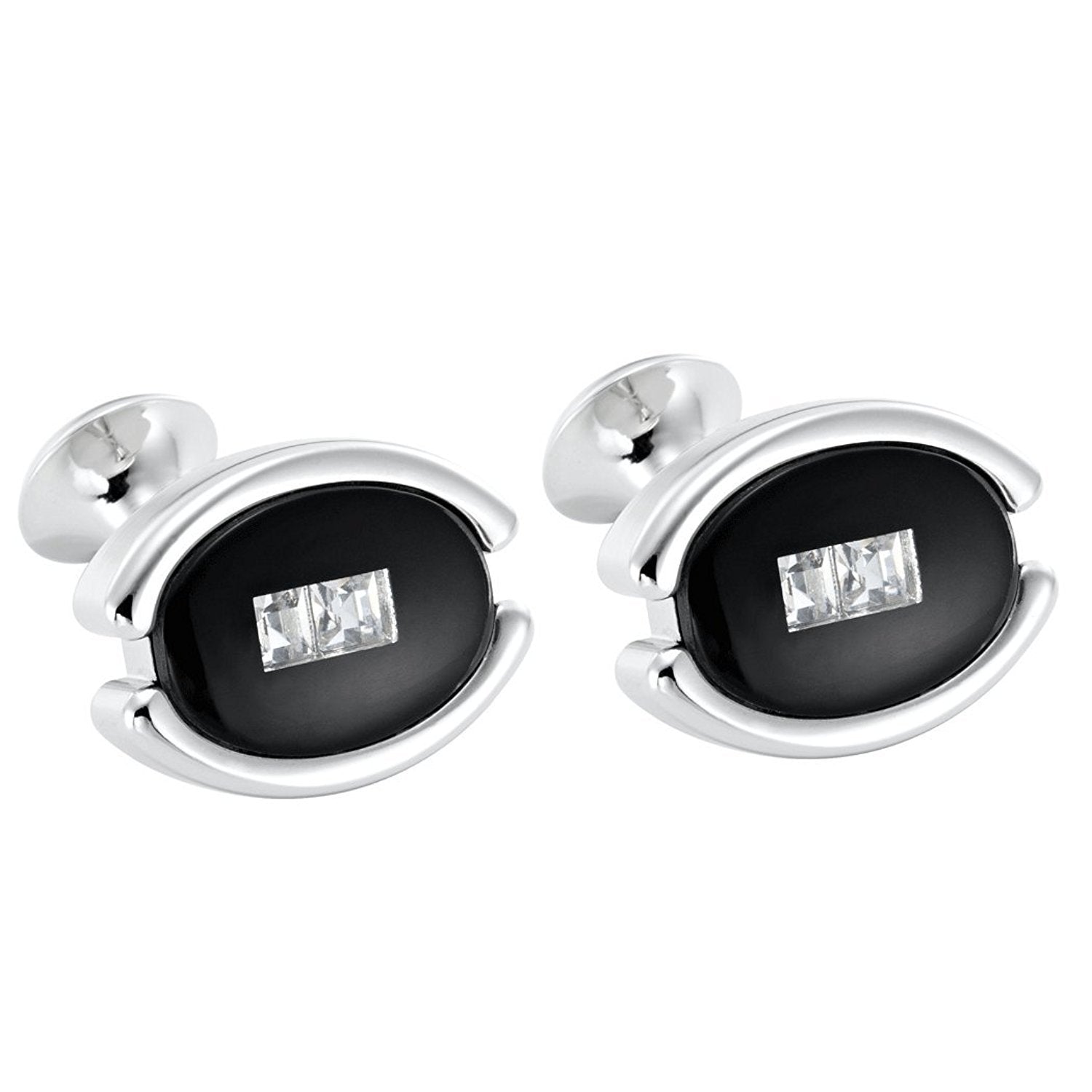 Mens Stainless Steel Cufflinks Oval Cubic Zirconia Eye Cuff Links (Black)