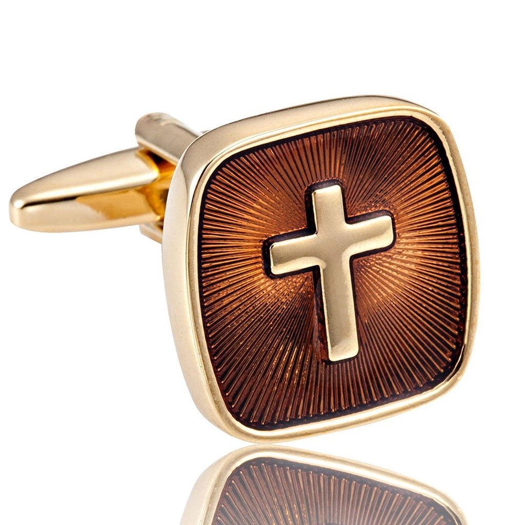 Amazing Mens Stainless Steel Cufflinks with Gold Holy Cross