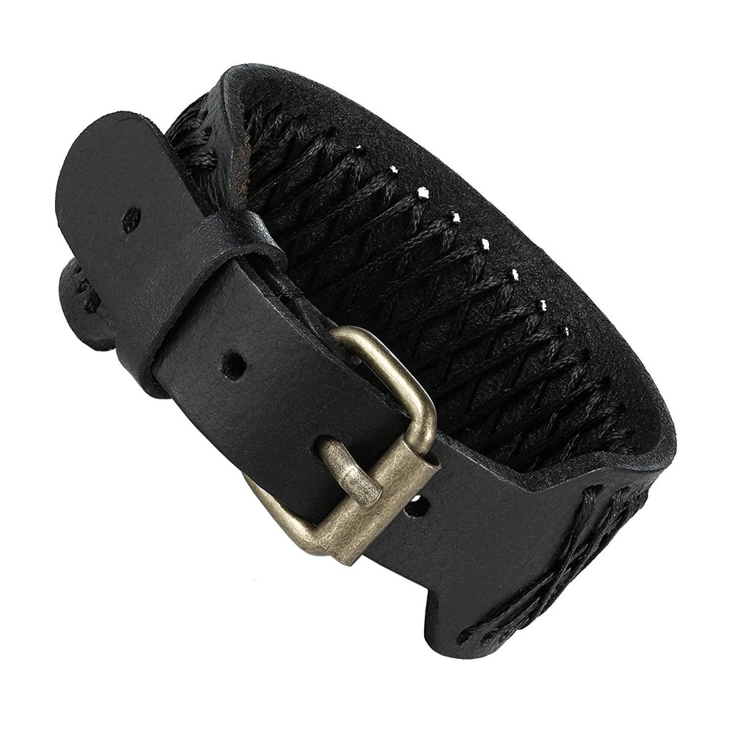 Black Genuine Leather Cuff Men's Bracelet Perfect as a Gift (adjustable 7.3 to 9.25 inches)