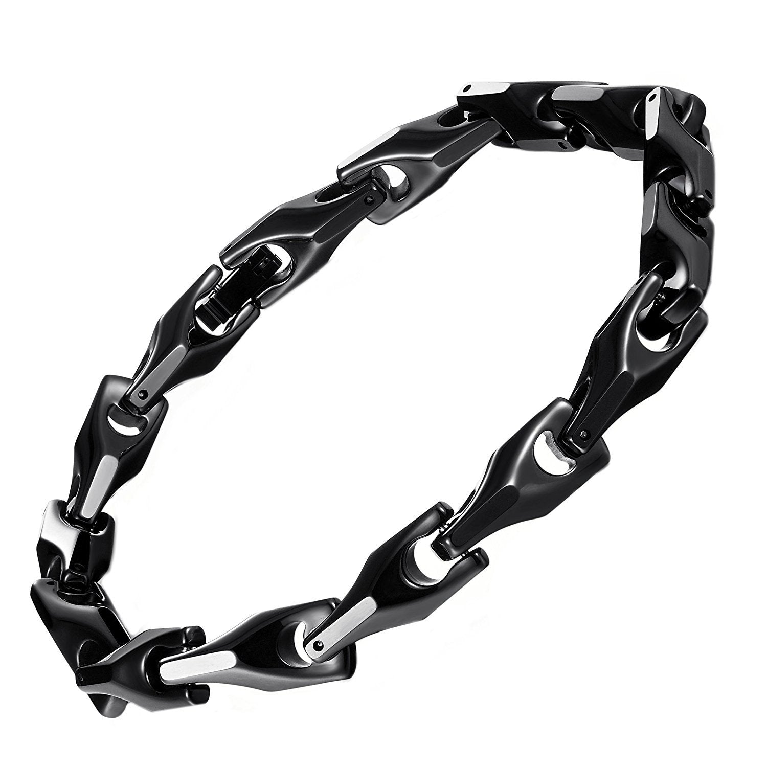 • WEAR IN STYLE: This black tungsten carbide metal bracelet is fashionable in its link chain design and will make you feel good wearing it