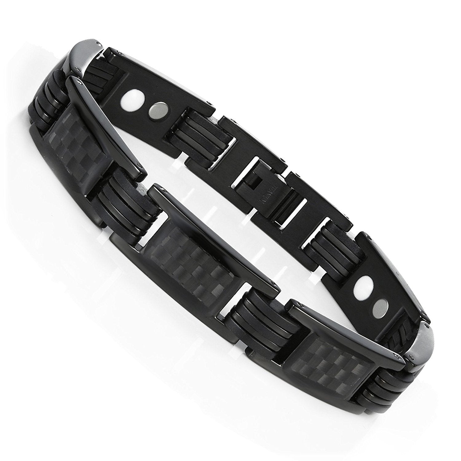 Men's Titanium Magnetic Link Bangle Bracelet with Carbon Fiber 8.66 inch (Black)