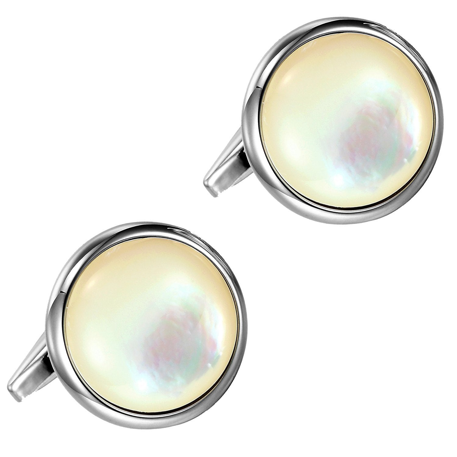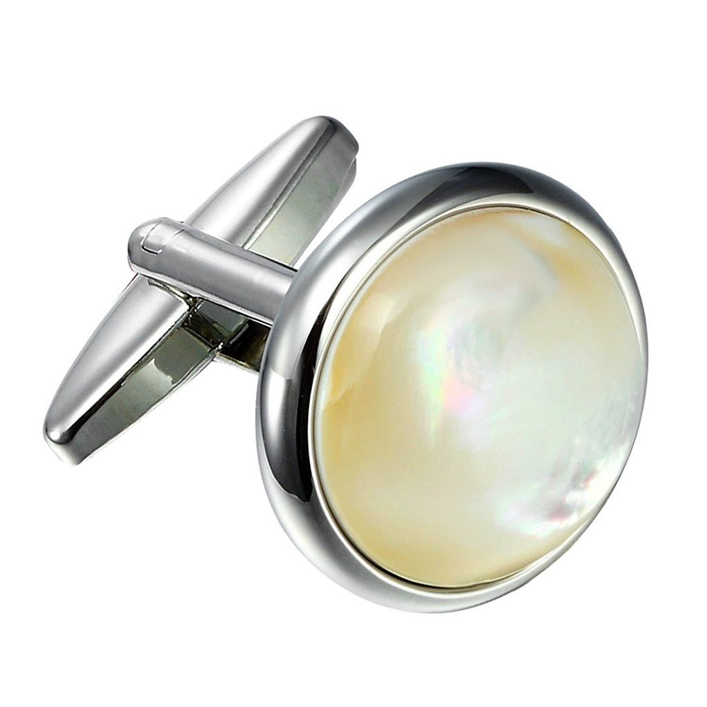 Unique 316L Stainless Steel Men's Round Cufflinks with Real Shell (Silver)