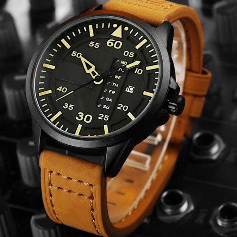 Item Type: Quartz wrist watchClasp Type: BuckleBand Material: LeatherBand Length: 23 cmWatch Case Material: AlloyWatch Face Diameter: 47 mmFunctions & Features: Water Resistant, Complete Calendar, Auto DateWater Resistance: 3 BAR