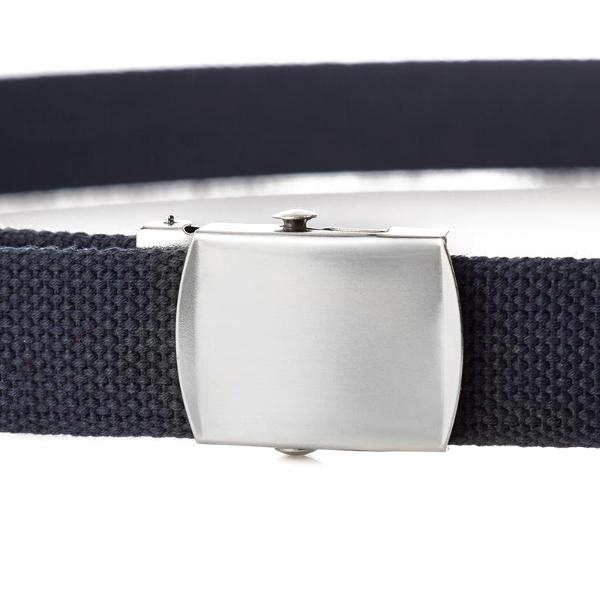This simple web belt is a great basic belt for all casual occasions. The durable canvas webbing and the seamless fastening mechanism guarantee comfortable long-term use. The simplistic metal buckle and the classic blue color create a subtle but clean combination.